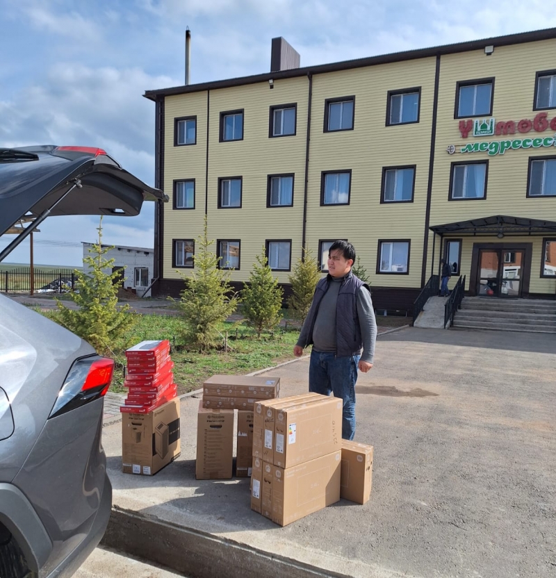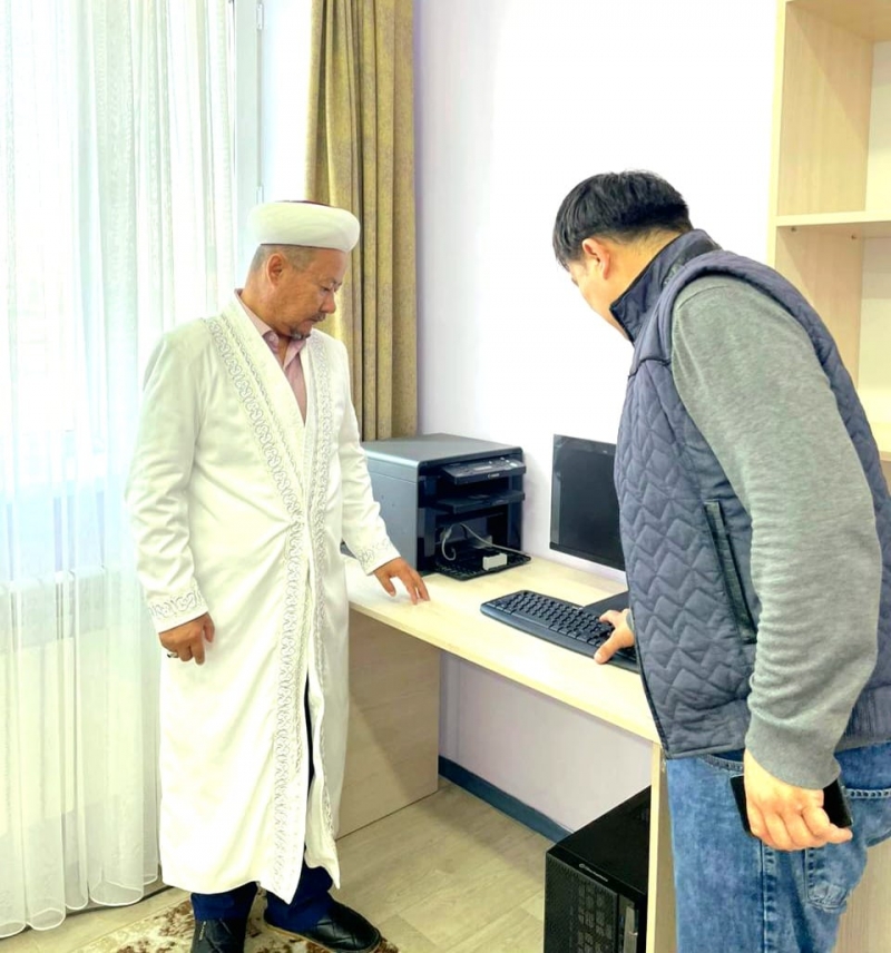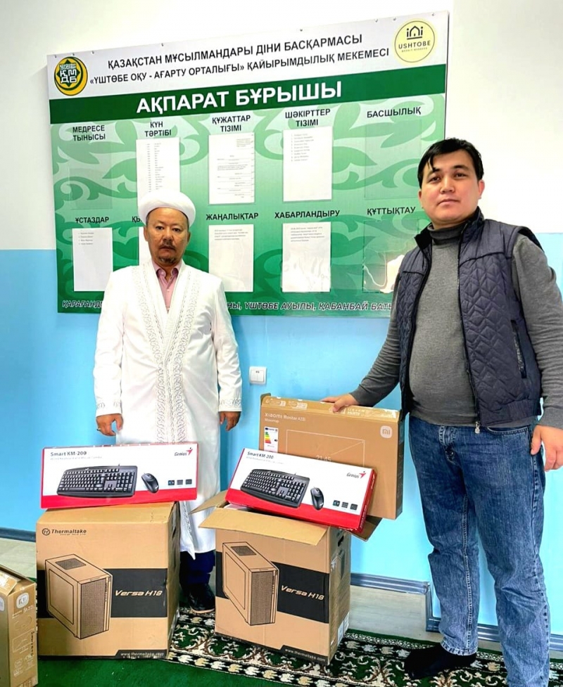 Қарағанды облысы, Бұқар Жырау ауданына қарасты Үштөбе ауылдық «Қажыбай қажы» мешітінің жанынан ашылған діни сауат ашу қайырымдылық орталығына ҚМДБ-ның Төрағасы, Бас мүфти Наурызбай қажы Тағанұлының атынан он компьютер құрылғысы тарту етілді.
