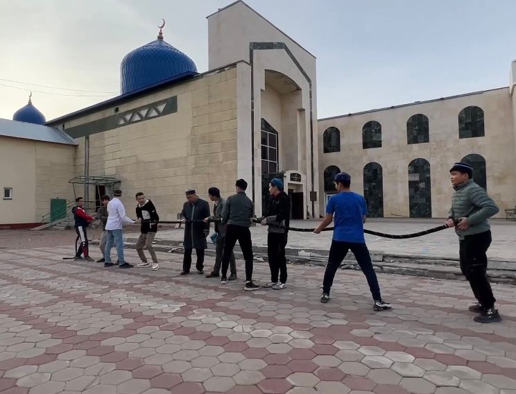 Мешіт ауласында ата дәстүр салтымыздан келе жатқан ұлттық ойындар ойнатылды. Атап айтқанда, арқан тартыс, асық ату ойындарынан мешіт жастары мен шәкірттері өнер көрсетті.