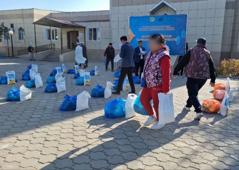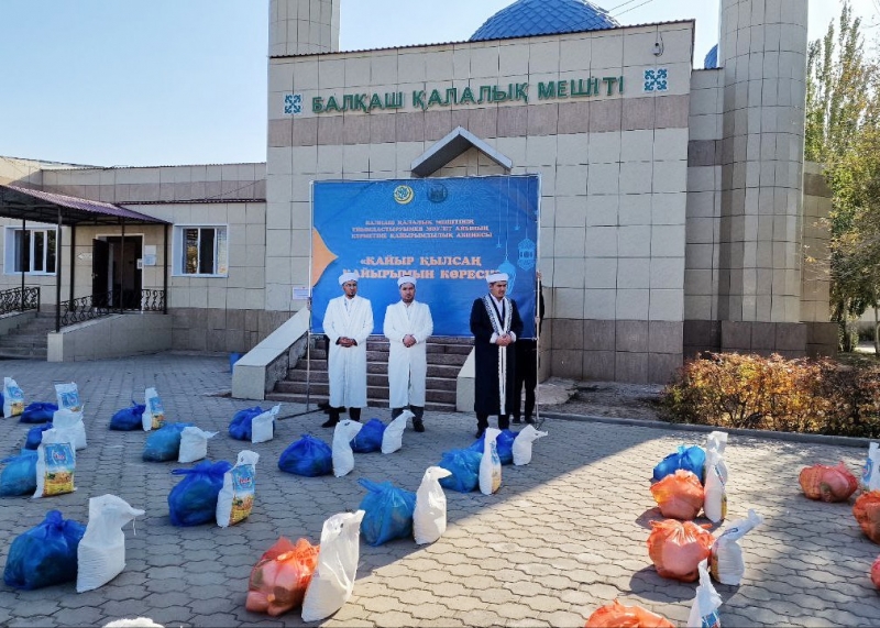 Республика күніне орай ҚМДБ-ның Қарағанды облысы бойынша бас имамы Естай Айтуғанұлы облысқа қарасты Балқаш қалалық мешітінің ұйымдастыруымен өткен қайырымдылық шарасына қатысып, әлеуметтік жағдайы төмен 50 отбасыға қайырымдылық қоржынын үлестірді.