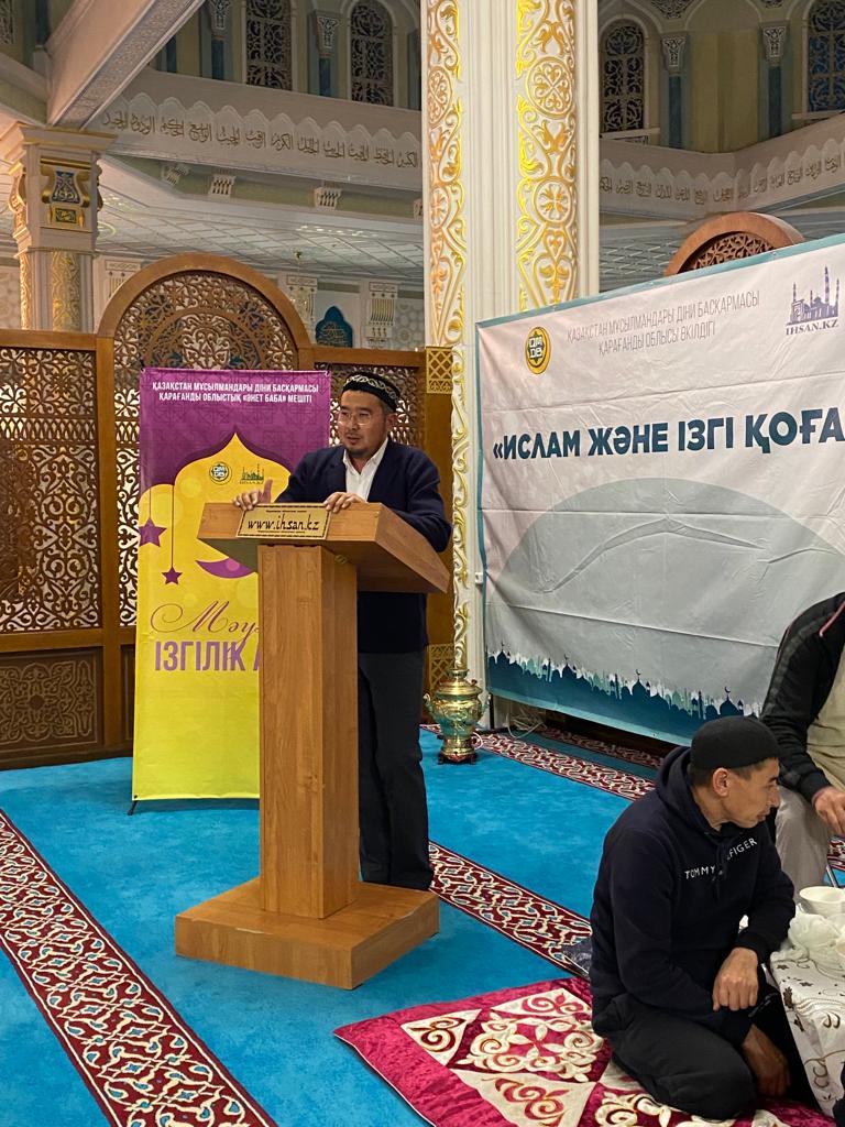 Жамағаттың бірлігі мен ауызбіршілігін нығайту мақсатында өткен рухани кешке Қарағандықалалық «Әл Машани» мешітінің имамы Сайлау Жұмағұлұлы арнайы қатысып, «Тақуалық пен үлкенге құрмет» төңірегінде уағыз-насихат айтты.