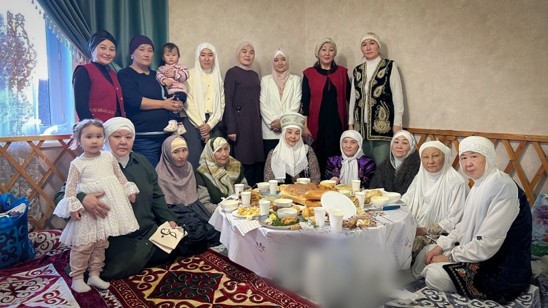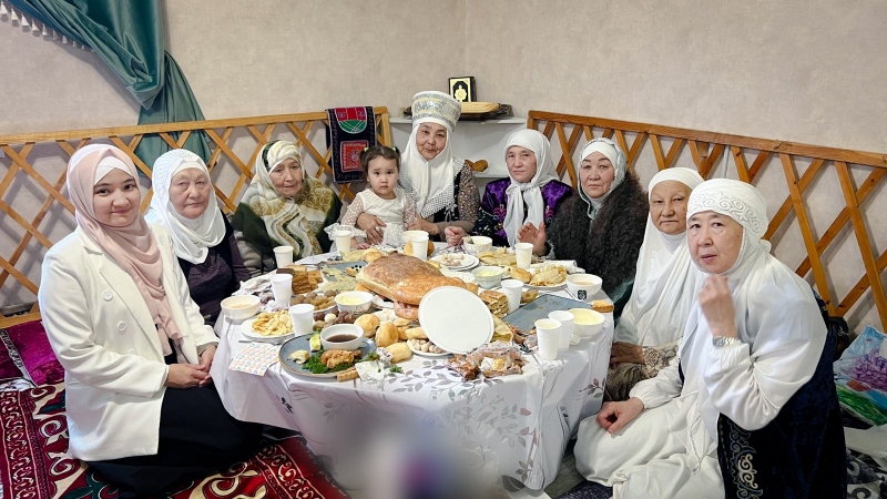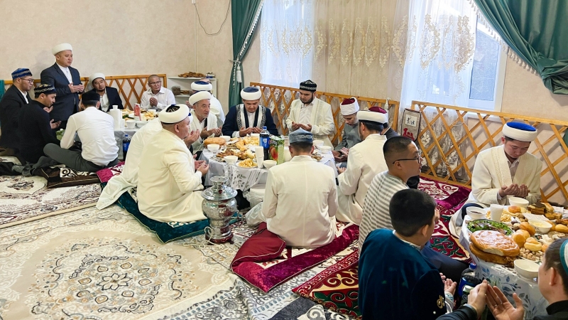 Кеш барысында мешіттің ақ жаулықты әжелер қауымы қазақы дастархан жайып, барша дін қызметкерлері мен құрметті қонақтар берекелі дастархан басында бас қосты.