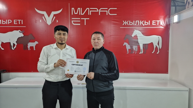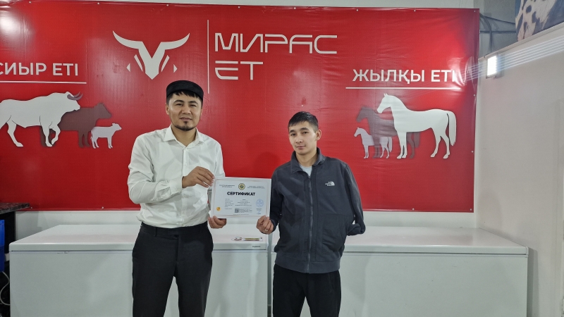 Қарағанды қаласы, «Молоков» көшесі, 123/11 мекен-жайында орналасқан «Аубакиров Ержан Советович» ЖК «Мирас ет» ет дүкені ҚМДБ Халал Даму ЖШС-ның сертификатын иеленді. Дүкеннің өнімдері толық тексерістен өткізілді. Аталмыш кәсіпорын 1:2016 “Мал бауыздау және ет өңдеу” және 1:2015 «Халал» өнімдерді өндіруге, дайындауға, өңдеуге, сақтауға, тасымалдауға және сатуға қойылатын жалпы талаптар стандарты бойынша барлық талаптарға сай екені расталды. Сертификатты ҚМДБ-ның Қарағанды облысы бойынша жауапты өкілі Амангелді Дәулеткелдіұлы табыстады.