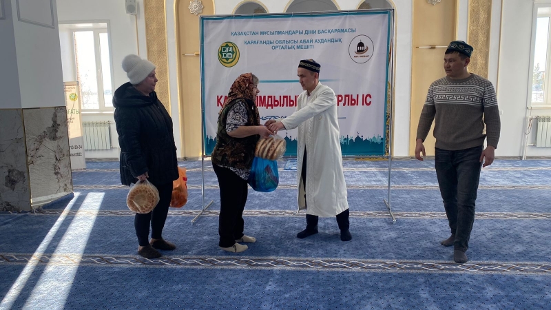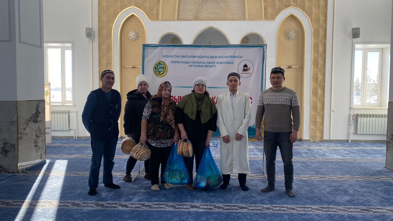 Ережеп айының құрметіне орай Қарағанды облысына қарасты Абай аудандық орталық мешітінде әлеуметтік көмекке мұқтаж бес отбасына азық-түлік үлестірілді.