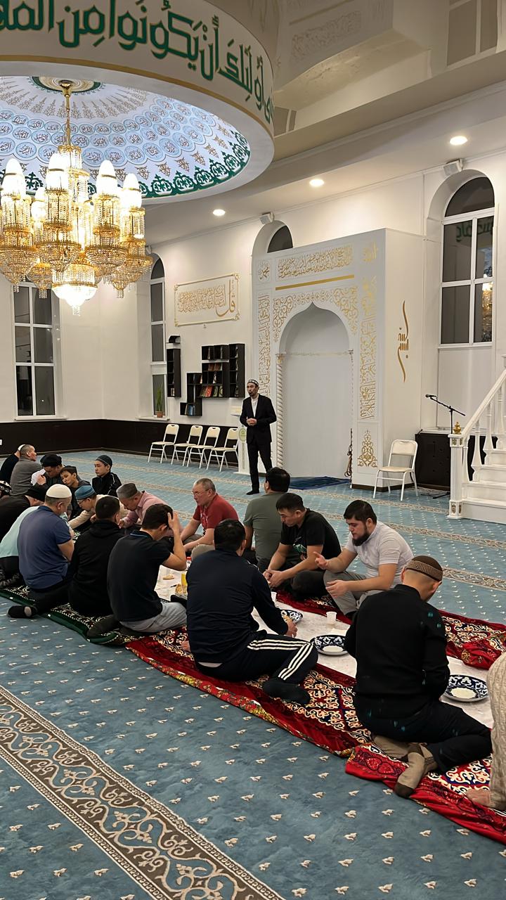 «Бірлігі жарасқан жамағат» тақырыбы аясында өткен рухан кеш барысында мешіт наиб имамы Ербол Ерсінұлы жергілікті жамағатқа насихат айтты. Сонымен қатар, олардың тарапынан туындаған сұрақтарына жауап берді.