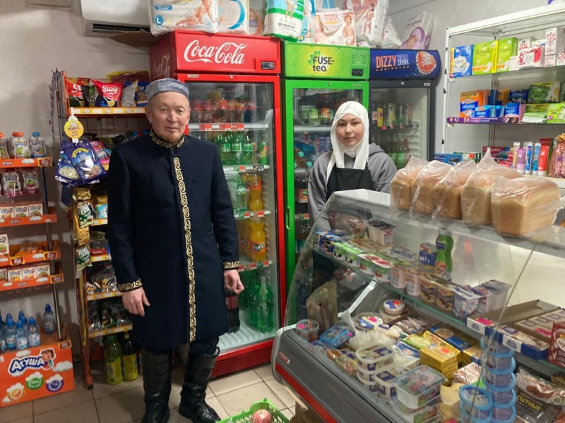Мешіт азаншысы Нұрғали Берікқұлұлы дүкеннің қызметкерлері мен тұтынушыларға ішімдіктің зияны жайлы түсіндіру жұмыстарын жүргізді.