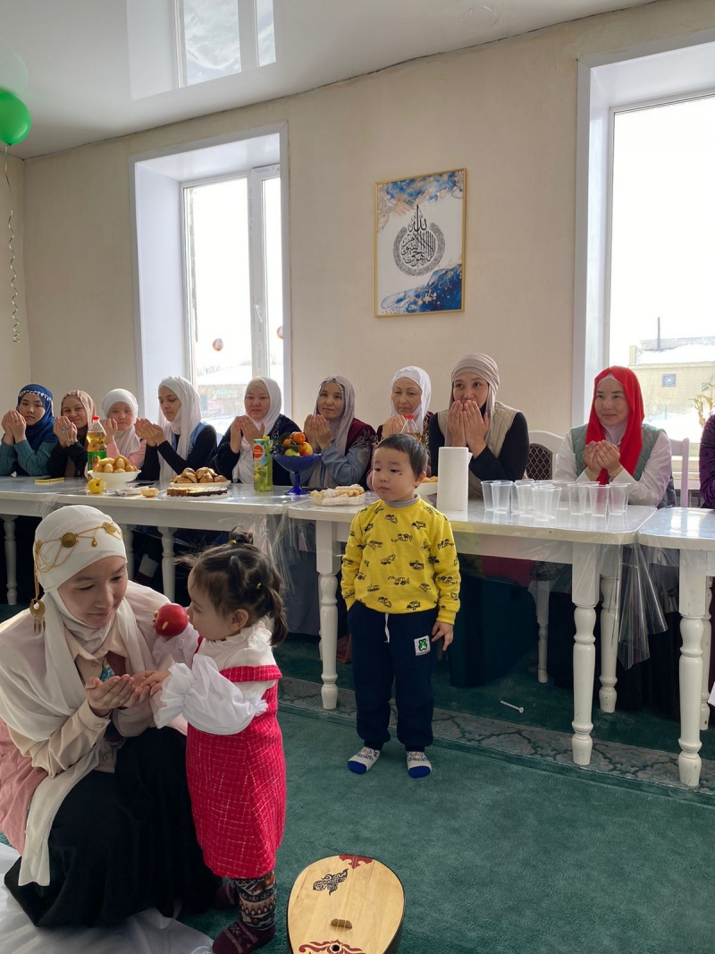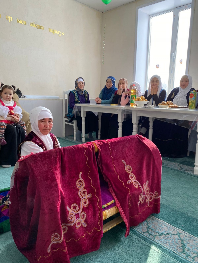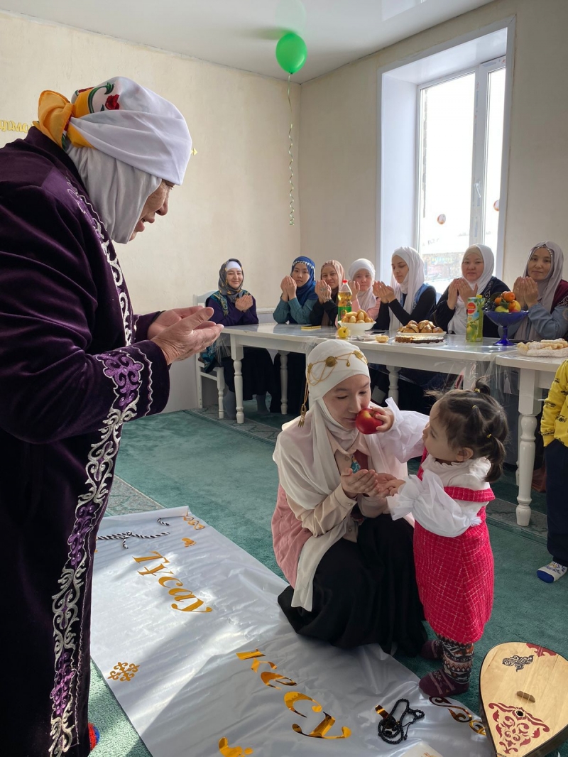 Іс шара барысында дәстүр құндылықтарын дәріптеу мақсатында мешітке жиналған әйелдер қауымына, қыз балаларға Майра әже ұршық иіруді, кішкентай сәбиді бесікке бөлеуді көрсетіп, Қазақи дәстүр бойынша баланың тұсауы кесілді.