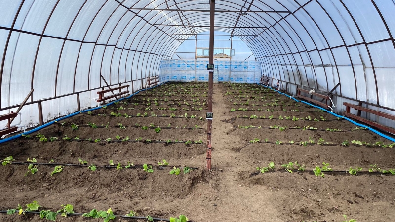 Бұқар Жырау ауданына қарасты Үштөбе ауылдық «Қажыбай қажы» мешіті жанынан салынған жылыжай құрылысы сәтті аяқталып, медресе шәкірттері алғашқы жемістерді екті.