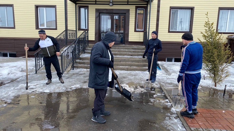 «Жұмыла көтерген жүк жеңіл»,-деген ұстаныммен Үштөбе ауылдық "Қажыбай қажы" мешіті ауласын қалың қардан тазартуға аймақ жастары ат салысты.