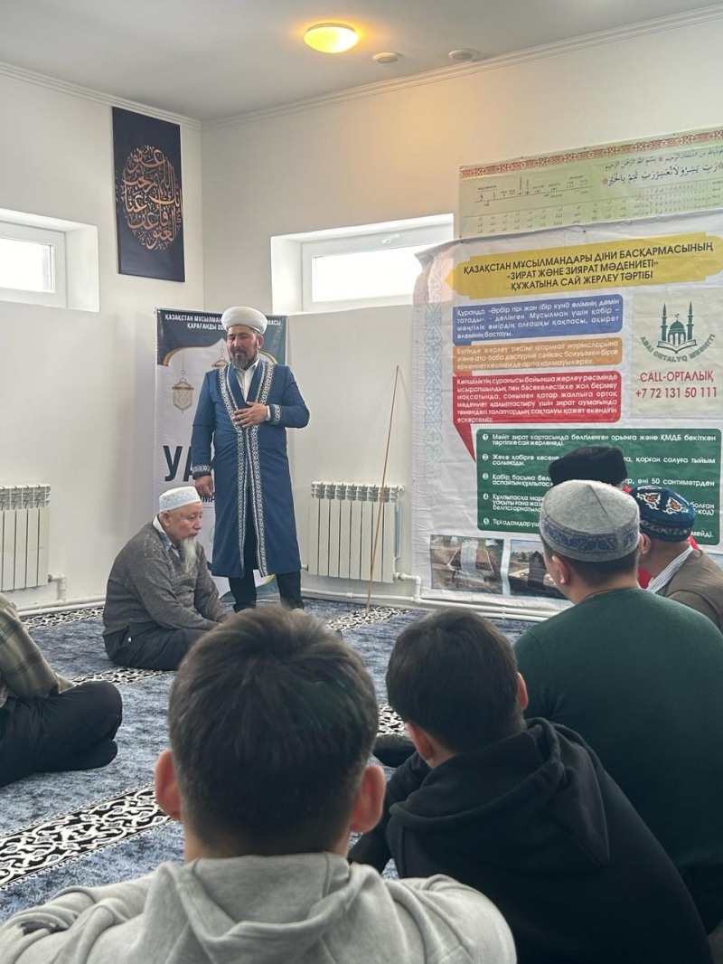 Атап айтқанда, жаназа, жерлеу, ас беру мәселесіндегі дәстүр, әдеттерді бір ізге түсірумақсатында дәріс оқыды.