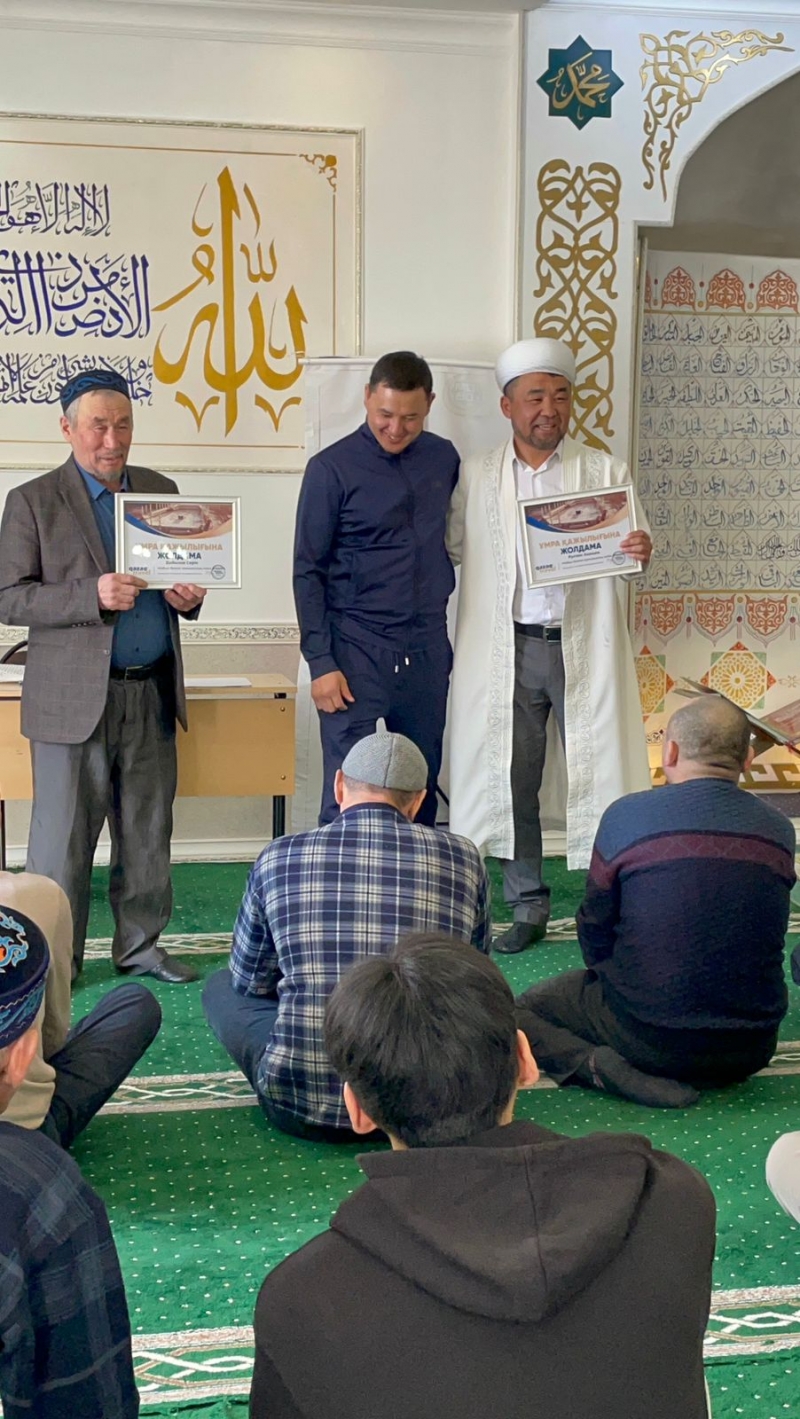 Қарағанды облысына қарасты Бұқар Жырау аудандық «Жыржыс қажы» мешітінің имамы Рүстем Мұратұлына және мешіт жамағаты Дабылов Серік ақсақалға кіші қажылыққа жолдама тарту етілді.