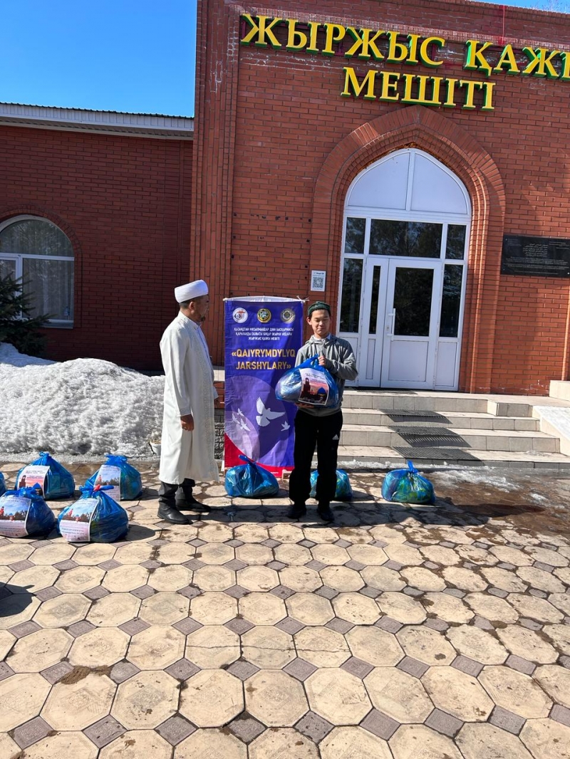 ҚМДБ-ның Қарағанды облысына қарасты Бұқар Жырау аудандық «Жыржыс қажы» мешітінің имамы Рүстем Мұратұлының ұйымдастыруымен қасиетті рамазан айының құрметіне орай аймақтағы әлеуметтік көмекке мұқтаж 45 отбасыға «Рамазан қоржыны» үлестірілді.