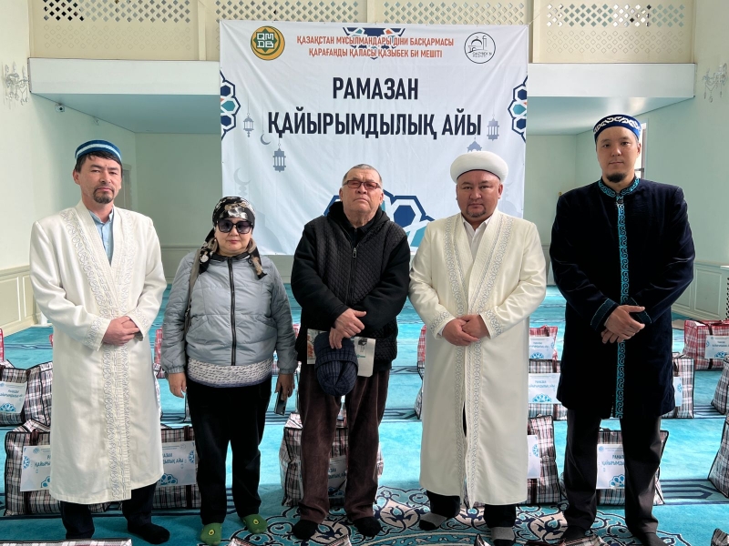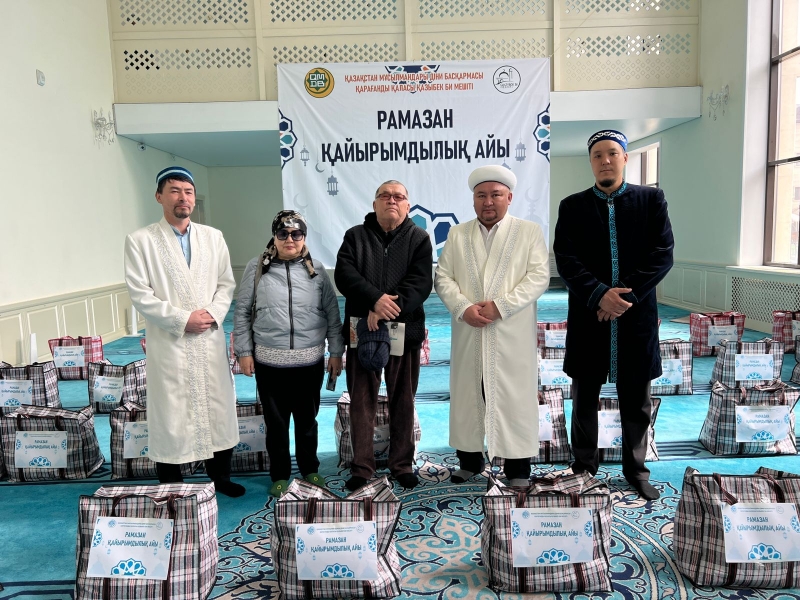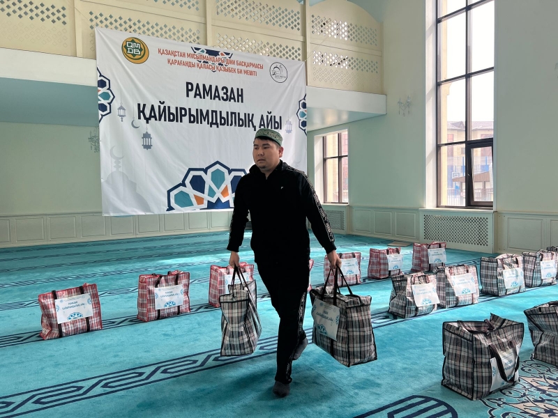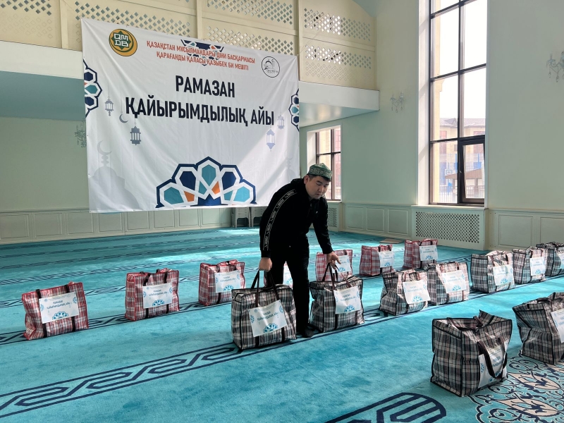 ҚМДБ-ның Қарағанды облысы бойынша бас имамы Естай Айтуғанұлының тапсырмасымен Қарағанды қалалық «Қазыбек би» мешітінің имамы Ербол Мұқанұлының ұйымдастыруымен қасиетті рамазан айының құрметіне орай аймақтағы әлеуметтік көмекке мұқтаж 90 отбасыға «Рамазан қоржыны» үлестірілді.