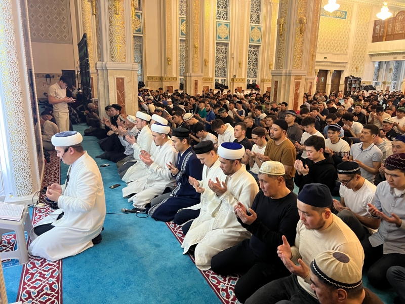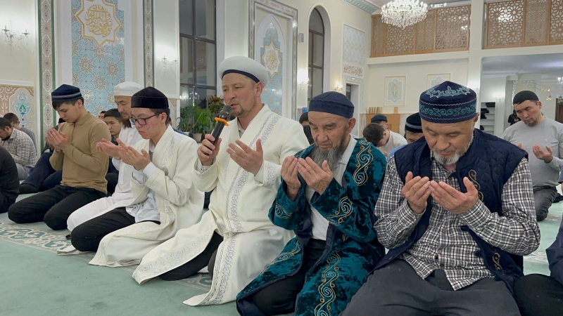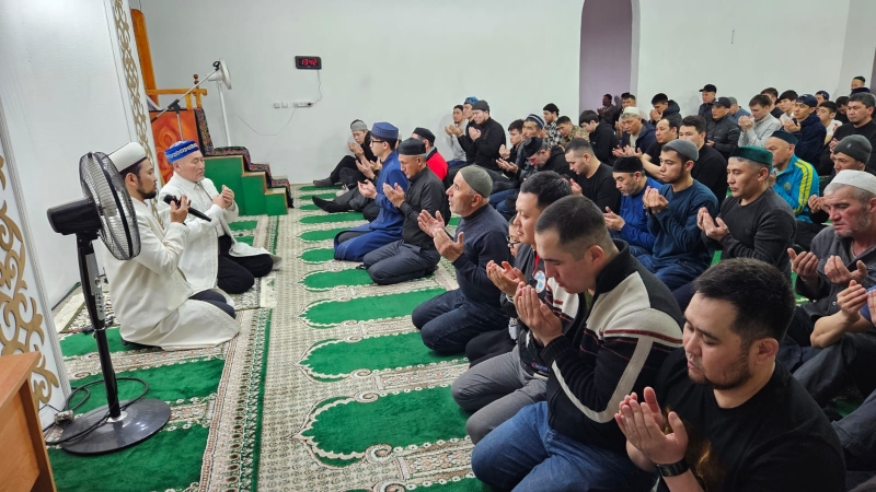 Қарағанды облысының бас имамы Естай Айтуғанұлы бастаған дін қызметкерлері мен мешіт жамағаты бір мезетте алақан жайып: