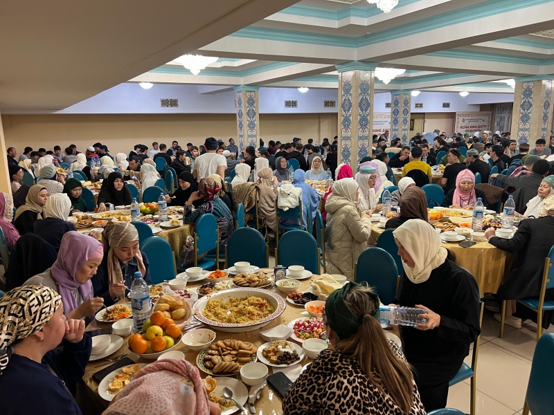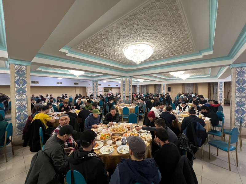 Мешіт асханасымен қатар, құлшылық үйінің ауласына құрылған қазақы киіз үйде де ас ұсынылып, жамағатқа дәм берілді.