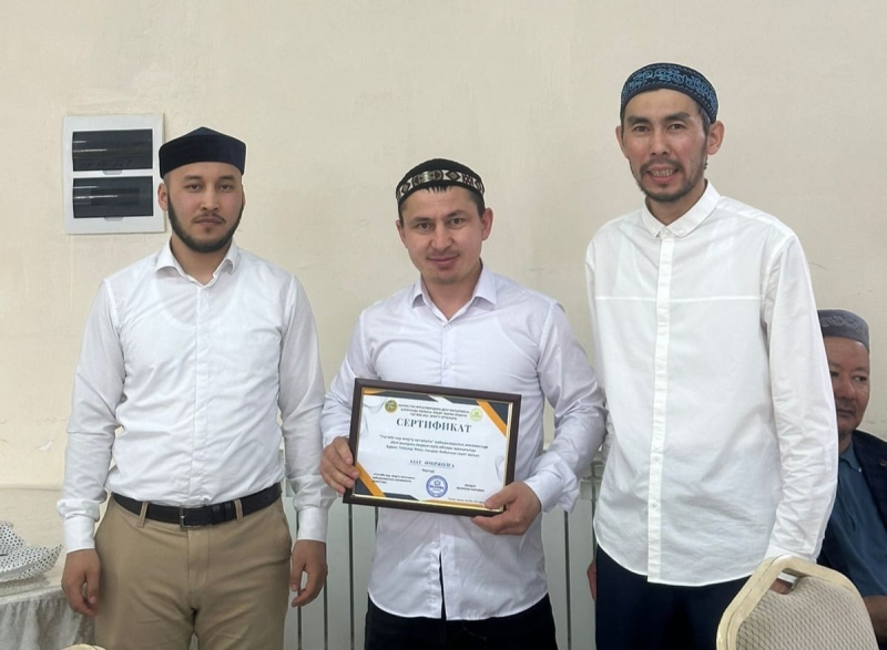 Еліміздің үш тарапынан, нақтырақ айтқанда, Өскемен, Шымкент, Қостанай қаласынан арнайы келіп Қарағанды өңірінде діни біліммен сусындаған шәкірттерге аймақ ұстаздары арнайы сертификат табыстап, ізгі тілектерін білдірді. Дастархан жайылып, құрметпен шығарып салды.