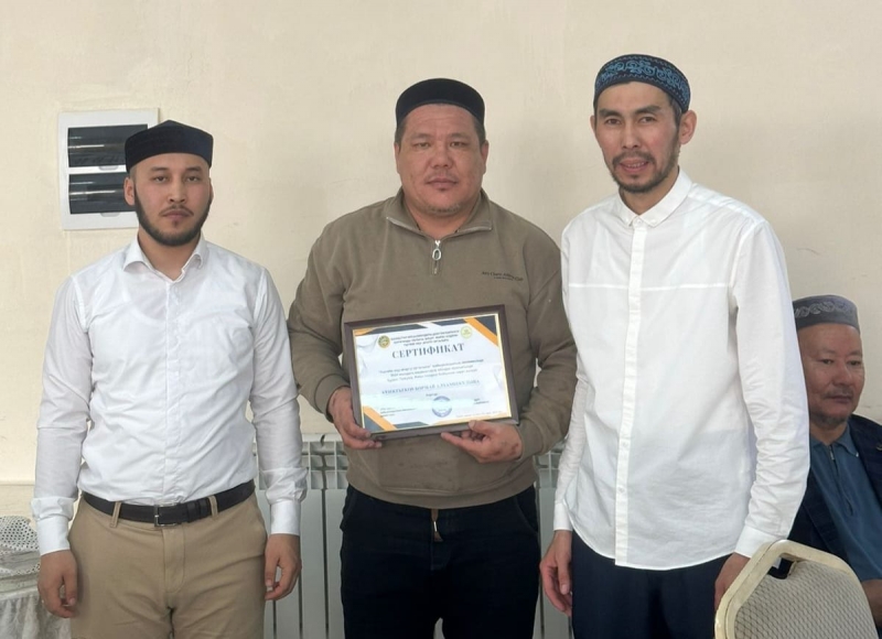 Бұқар Жырау ауданына қарасты Үштөбе ауылдық «Қажыбай қажы» мешіті жанындағы діни оқу ағарту орталығының шәкірттері сертификатталды.