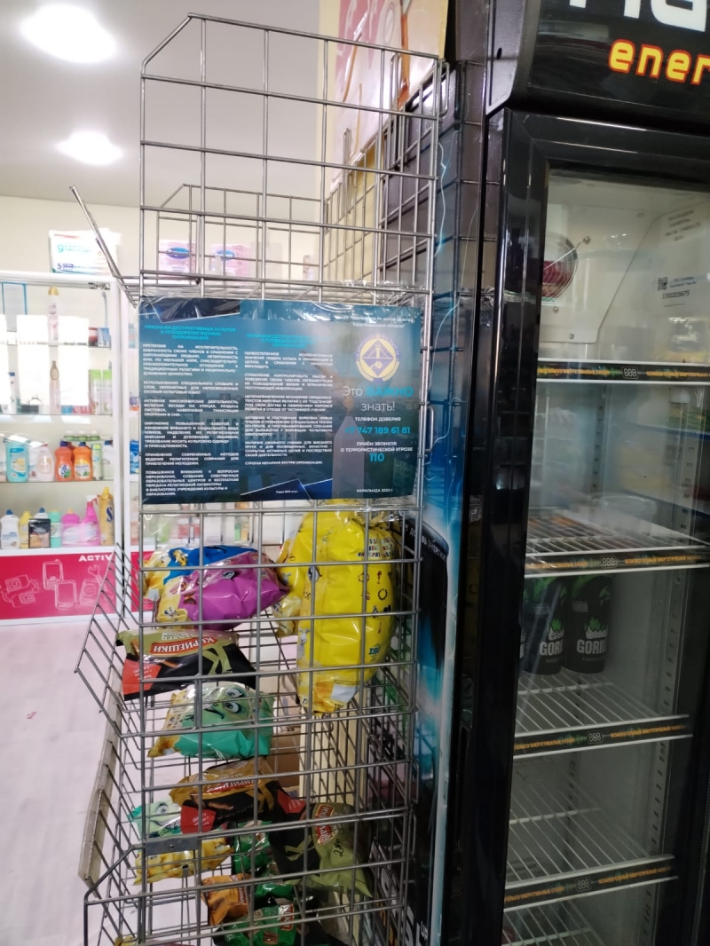 Атап айтқанда, дүкендерде, көшелерде, аялдамаларда, мемлекеттік қызмет орындарында және тағыда басқа қоғамдық орындарда насихат жұмыстары жүргізілді. Арнайы бүктемелер таратылып, діни экстремизімнің алдын-алу шаралары жүзеге асты.