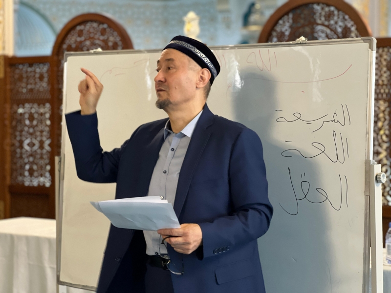 Семинарды Астана қаласынан арнайы шақыртуымен келген діндерді зерттеу орталығының теологы, «Әл – Азхар» халықаралық университетінің түлегі Смагулов Марат Аманжолұлы жүргізіп, жат ағымдармен күрестің маңыздылығы жайында дәріс оқуда.