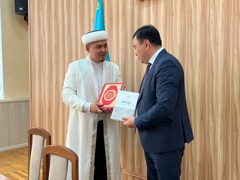 Кездесу соңында облыс бас имамы аудан әкіміне Қазақстан мұсылмандары діни басқармасының төрағасы, Бас мүфти Наурызбай қажы Тағанұлының басшылығымен жарыққа шыққан «Ихсан – рухани тәрбие негізі» кітабын сыйға тартты.