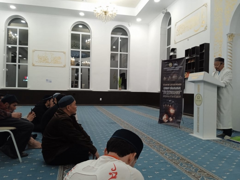Үштөбе ауылдық «Қажыбай қажы» мешітінде «Ізгі қоғам» бағыты аясында мешіт наиб имамы Аманбол Рымқұлұлы жамағатқа құмар ойынының лудомания зардабы туралы насихат айтты.