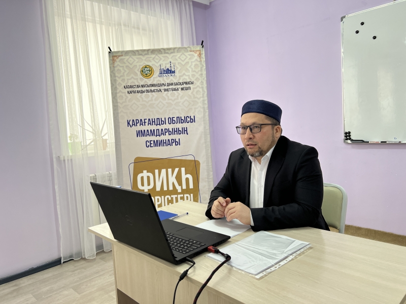 Семинарды «Шариғат және пәтуа» бөлімінің маманы Құрсақов Медет Құрмашұлы жүргізіп, фиқһ саласы бойынша дәріс оқыды.
