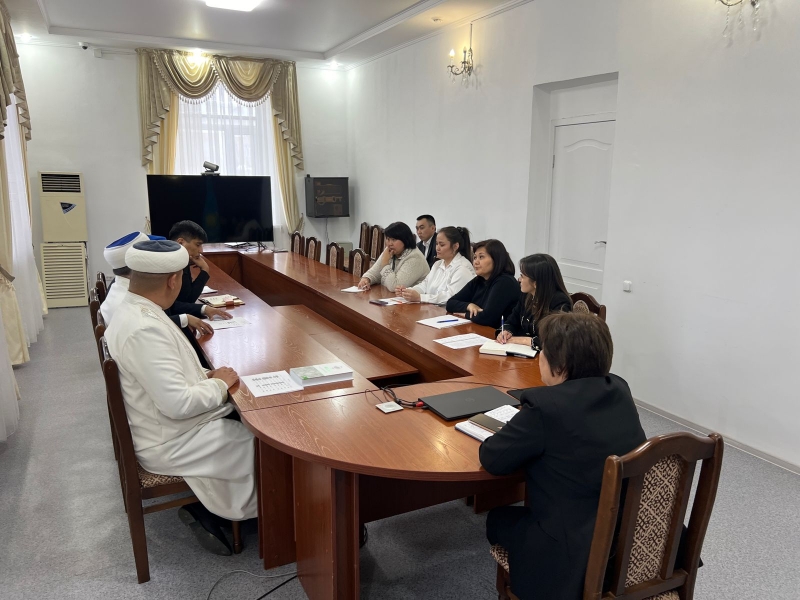 Кездесу соңында облыс бас имамы Естай Айтуғанұлы әдеттегі игі үрдіс бойынша аудан басшылығына «Мүфтият» баспасынан жарық көрген «Ихсан – рухани тәрбие негізі» кітабын хадия етті.