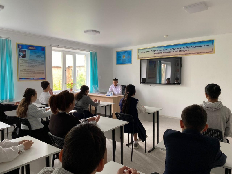 Қарағанды облысы, Шет ауданы, Үңірек ауылдық округінің орта білім беру мектебінің жоғарғы сынып оқушылары арасында аудандық "Жанқұтты би" мешітінің ұстазы Қарубай Берікұлы "Дін деген көркем мінез" атты тақырып бойынша кездесу жүргізді.