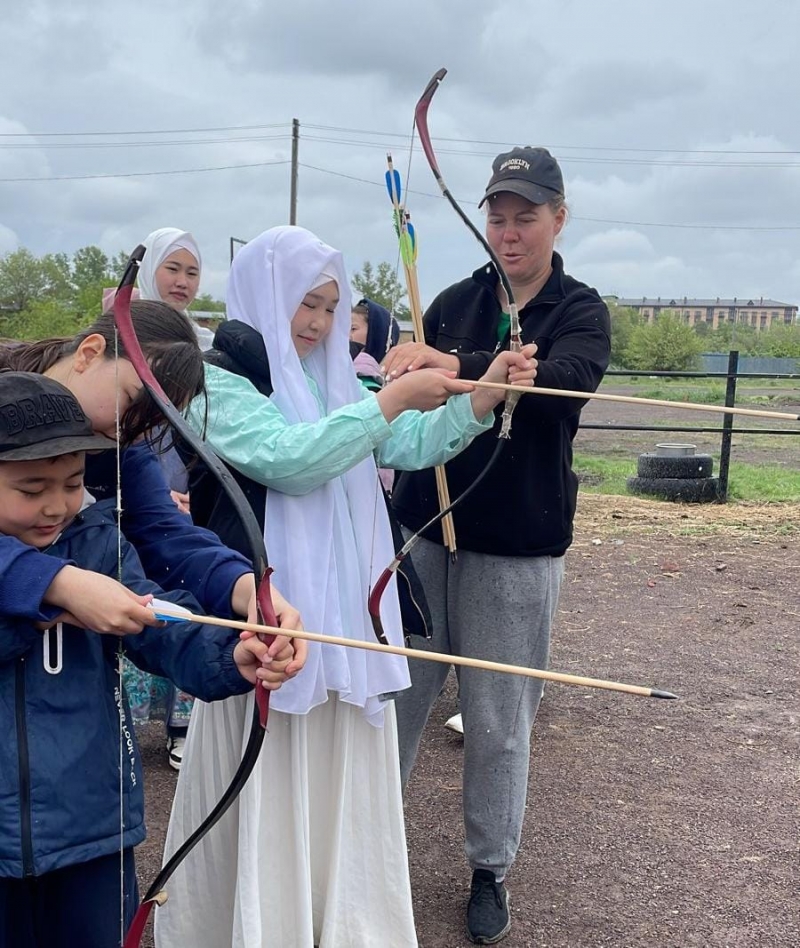 Үштөбе ауылы "Қажыбай қажы" мешіті әйел-қыздар секторының ұйымдастыруымен, қазақтың ұлттық спортын насихаттап, батыр аналарынымызды дәріптеу мақсатында мешіт шәкірттері садақ атып үйренді. Дәстүрлі спорттық шара мешіт ұстазы Гүлнұр Қаныбекқызының ұйымдастыруымен өтті.