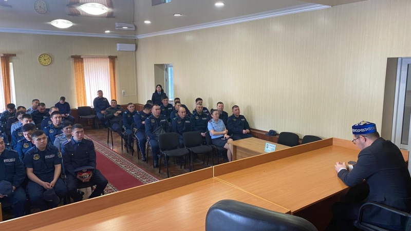 Қарағанды облысы бойынша жат діни ағымдардың алдын-алу бағытының жауапты меңгерушісі Данияр Ерікұлы Қарағанды қаласындағы күзет қызметі басқармасының қызметкерлерімен «Жат ағымның белгілері» тақырыбында кездесу өткізді.