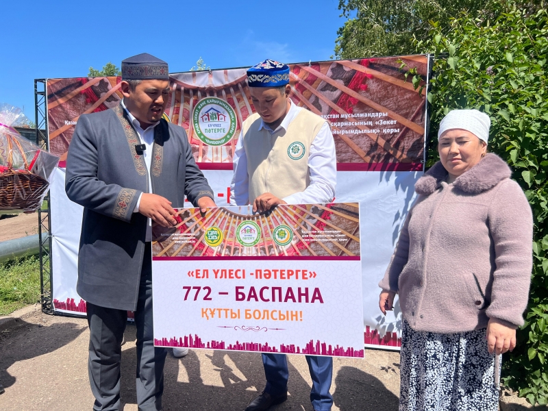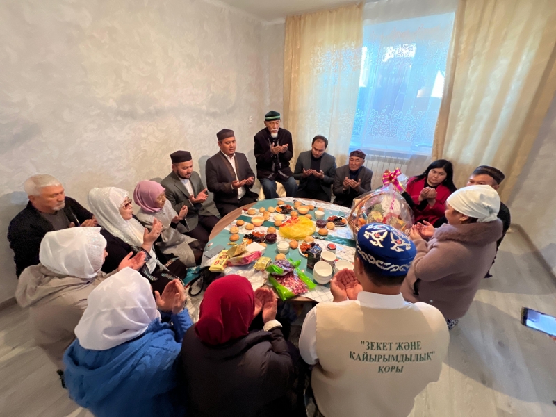 Жиын барысында облыс бас имамы көп балалы жалғызбасты анаға өзінің ыстық лебізін білдіре келе, 2 бөлмелі пәтердің кілтін тарту етті. Аудан имамы Асхат Қанайұлы арнайы сөз алып, қайырымдылық жобасы аудан тұрғындары мен жанашырларының демеушілігімен жүзеге асқанын тілге тиек етті.