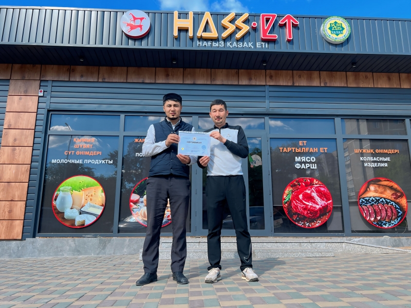 Қарағанды қаласындағы «Джумабекова» ЖК «HAS ET» ет дүкені сертификатын жаңартты. Дүкеннің өнімдері толық тексерістен өткізілді. Аталмыш кәсіпорын 1:2016 “Мал бауыздау және ет өңдеу” және 1:2015 «Халал» өнімдерді өндіруге, дайындауға, өңдеуге, сақтауға, тасымалдауға және сатуға қойылатын жалпы талаптар стандарты бойынша барлық талаптарға сай екендігі тағыда бір расталды. Сертификатты ҚМДБ-ның Қарағанды облысы бойынша жауапты маманы Амангелді Дәулеткелдіұлы табыстады.