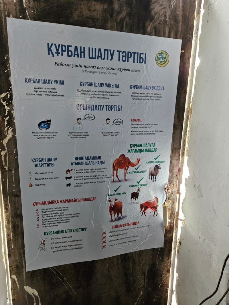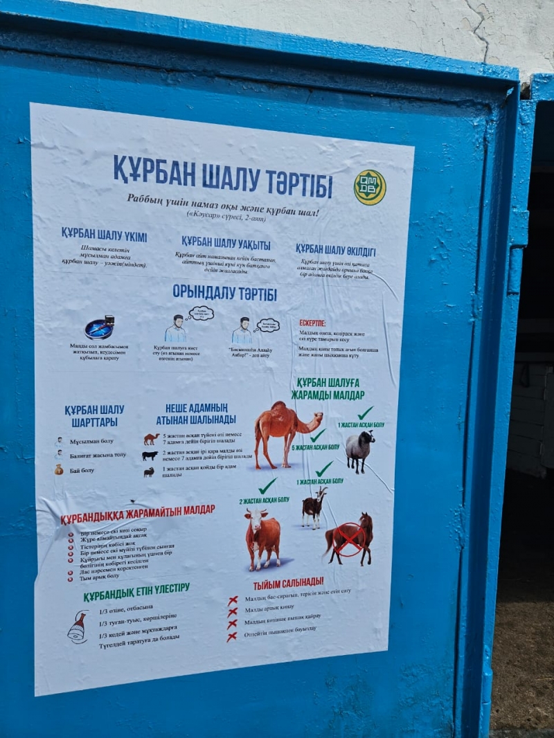 Қасиетті Құрбан айт мейрамының жақындауына орай Қарағанды қаласындағы құрбандық шалынатын орындарында дайындық жұмыстары пысықталып, арнайы банерлер мен құрбандық ережелері ілінді.