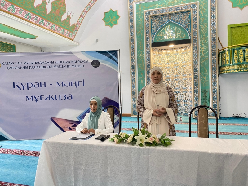 Қарағанды қалалық «Әл Машани» мешітінің ұстазы Бақытгүл Айтқалиқызының ұйымдастыруымен қасиетті құрбан айт мейрамының құрметіне орай әйелдер жамағатына «Құран мәңгі мұғжиза» атты уағыз - насихат айтылды.