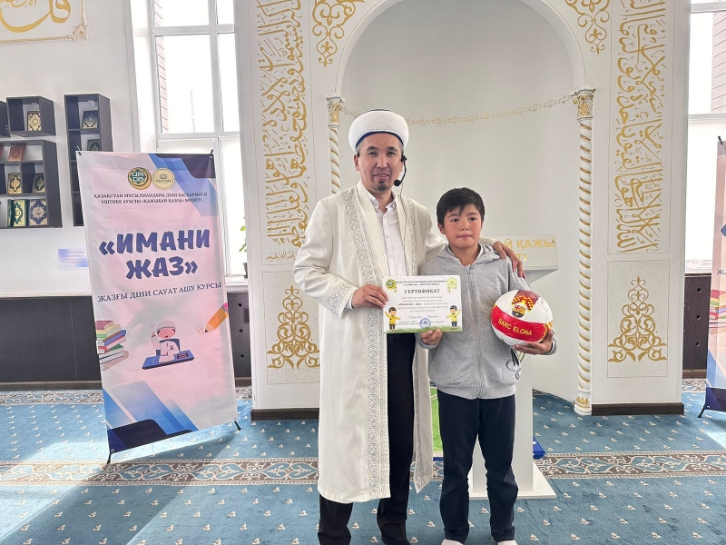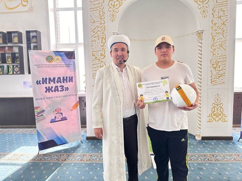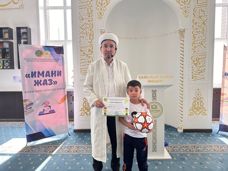 Үштөбе ауылдық «Қажыбай қажы» мешіті жанындағы «Жастар ісі» секторының ұйымдастыруымен "Имани жаз-2024" атты жазғы сауат ашу дәрісінде діни білім алған шәкірттерге сертификат табысталды.