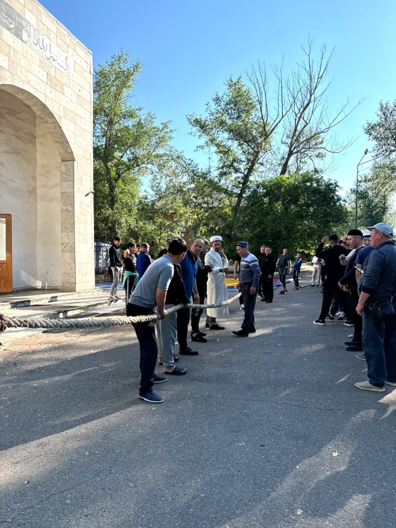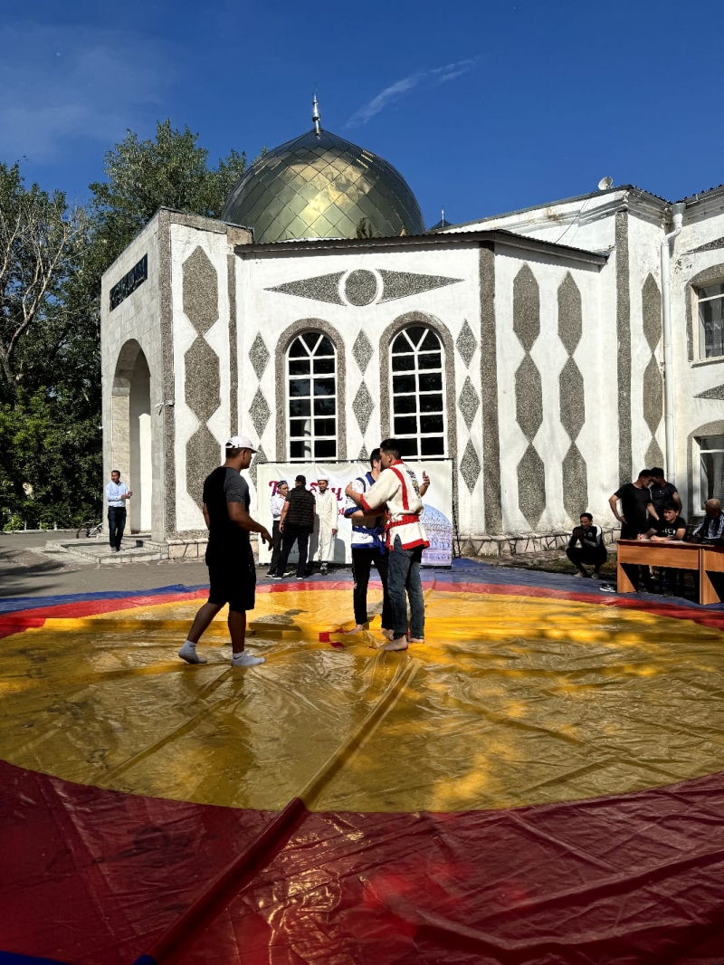 Айт намазына келген тұрғындар мешіт асханасында жайылған айттық дастархан басында көңілді қауышып, мейрамның қадір-қасиетімен бөлісті. Сонымен қатар, орталық мешіттің ұйымдастыруымен спорттық шаралар өтті. Мешіт ауласына жиналған жастар қазақ күресіне қатысып, 60 келіден жоғары салмақ дәрежесінде белдесті. Оның нәтижесі бойынша Дидар Нықаш 1-орынды қанжығасына байласа, 2-орынға Санжар Нықаш және 3-орынға Оңғар Уатхан жайғасты. Одан бөлек арқан тартыс ұлттық ойыны да өткізілді. Жүлдегерлер қаржылай сыйақымен марапатталды. Сондай-ақ, қазақ күресінде бәрінен оза шапқан балуанға қошқар сыйға тартылды.