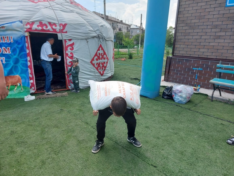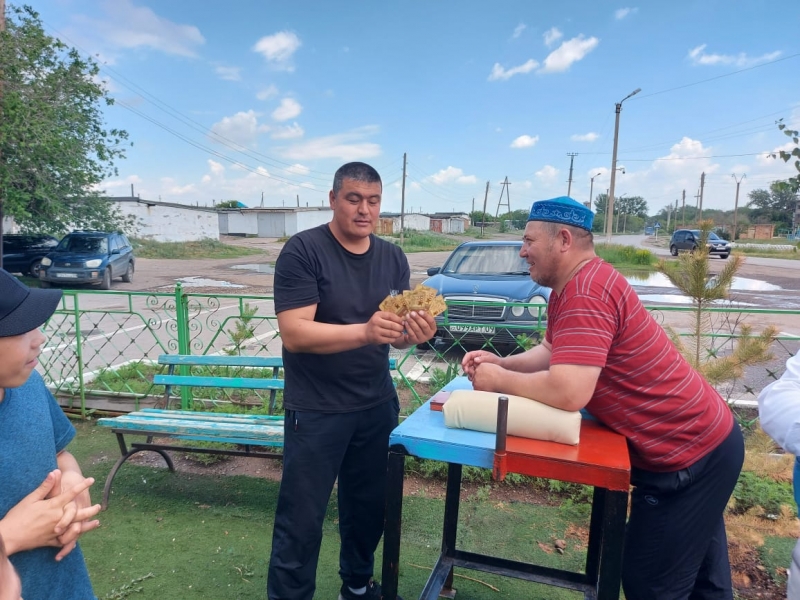 Айт намазынын бастап келушілер палау таратылып әр түрлі спорт ойындары ойнатылып құнды сыйлықтар таратылды. Ұлық мереке қайрымдылық іс шарамен жалғасып, 1 қара мал мен 11 қой құрбандыққа шалынып 15 отбасына таратылды.
