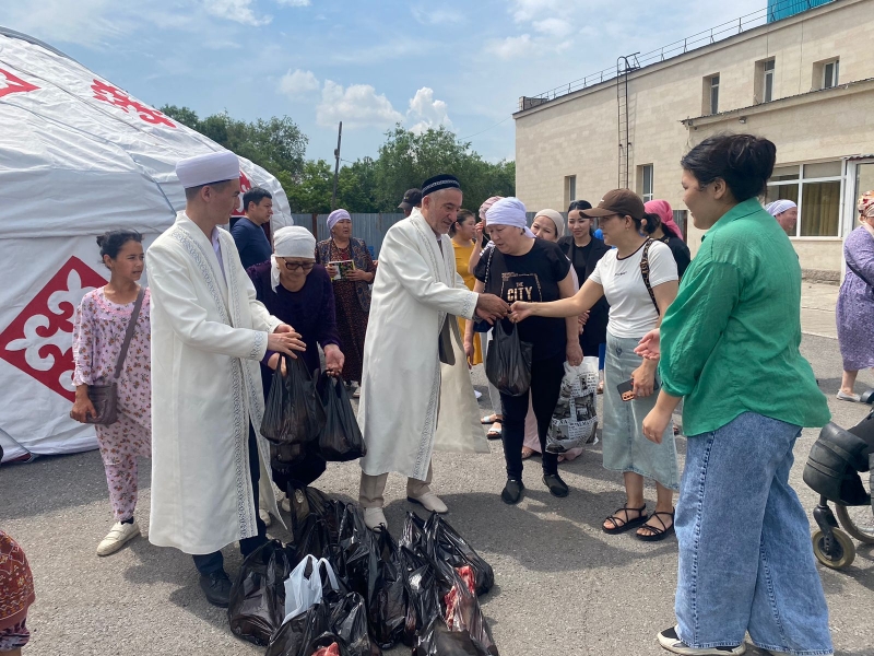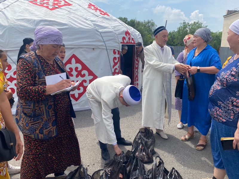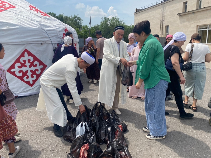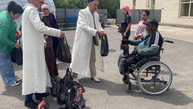 Құрбан етін тарату шарасы әлеуметтік жағдайы төмен отбасылар, асыраушысынан айырылған және мүгедек жандарды қамтып отыр.
