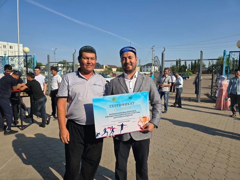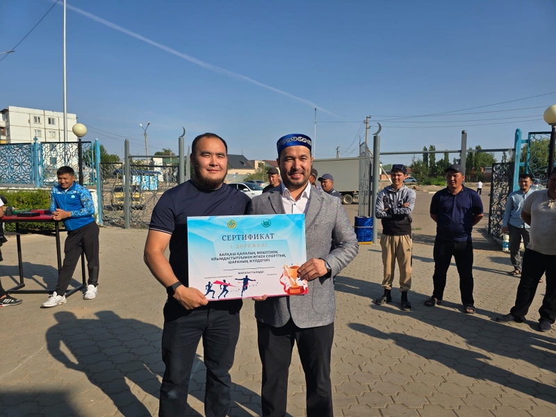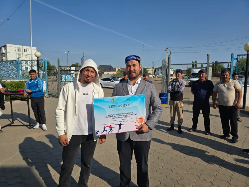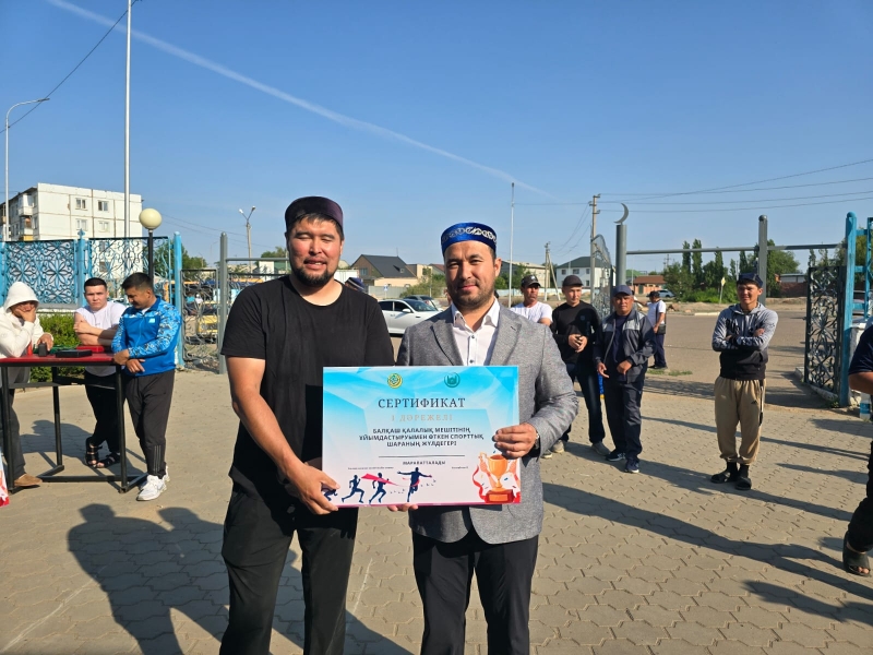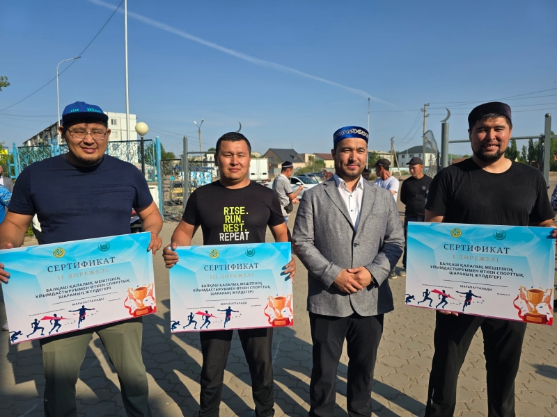 Қол күресу, кір көтеру, арқан тартудан өткен жарыста бірінші, екінші және үшінші орын алған жеңімпаздарға Балқаш қалалық мешітінің имамы Қалдарбеков Нұрболат Сейлханұлы сертификат беріп, ақшалай сыйлықтармен марапаттады.