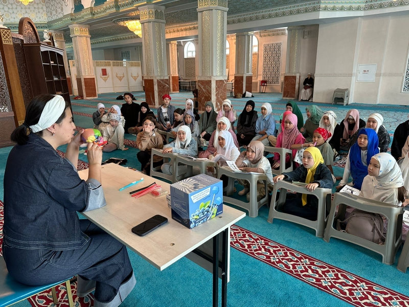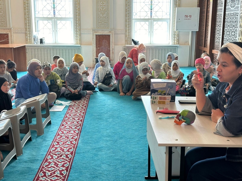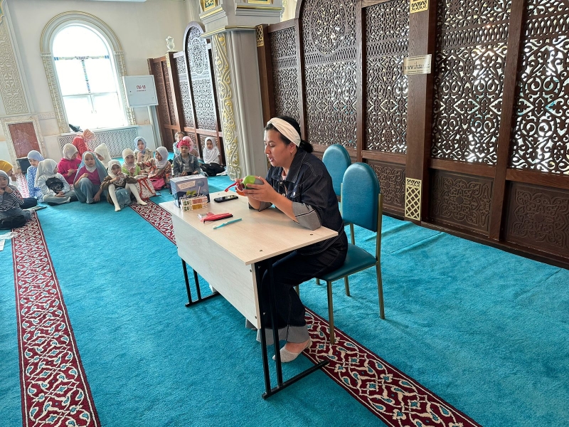 Қарағанды облыстық «Әнет баба» мешітінде “Имани жаз-2024” сауат ашудағы бүлдіршіндерге стоматолог маман Айнур Жанузаковамен арнайы тіс күтімі жайында ашық сабақ өтті.