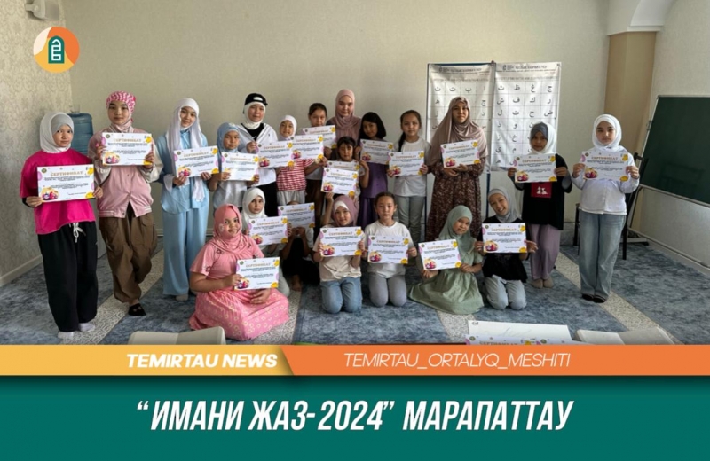 Теміртау қалалық "Жақып Ақбай" мешіттерінде маусым айынан басталған қыз балаларға арналған «Имани жаз-2024» жазғы сауат ашу курсы өз жұмысын аяқтап, шәкірттерге арнайы сертификаттар табыс етілді. Құран әліппесімен танысып, Алланың сөзін оқуды үйренген шәкірттер аталмыш курсты сәтті аяқтап шықты.