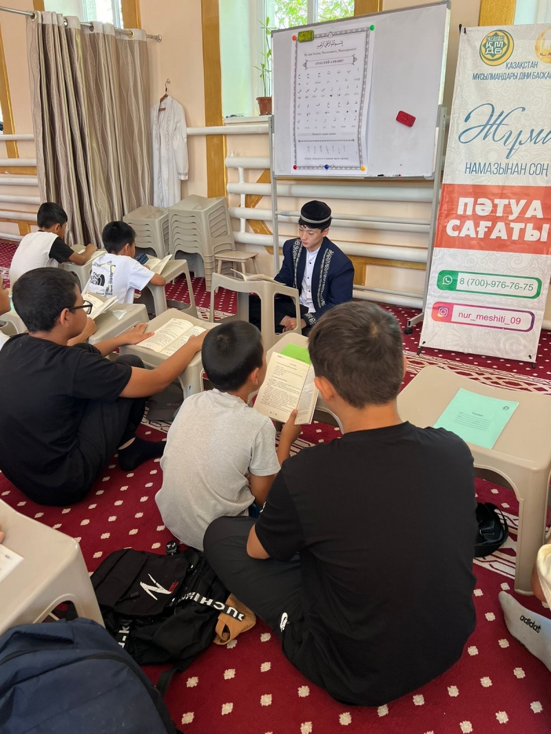 Білім – ақ пен қараны ажырататын, адам баласының көзін ашатын Алла Тағаланың адам баласына берген үлкен сыйы. Білім – ақыл мен парасаттың белгісі. Расында Ислам дінінің адамзат баласына қоятын ең басты талабы білім алу және іздену. Қарағанды облысына қарасты Шахтинск қалалық «Нұр» мешітінде «Имани жаз 2024» атты жазғы сауат ашу курсы өз жұмысын бастады. Жас жеткіншектерді асыл дініміздің ілімімен сусындататын ұстаздар бүгіннен бастап балаларға Құран Кәрімнің әріптерінен бастап, қысқа сүрелерді жаттып, дұға жасау, ғибратты әңгімелер мен тәрбие сағаты бағытындағы пәндерден дәріс жүргізеді. Сауат ашу курсының алғашқы күні мешіт имамы Әсет Наурызбайұлы жеткіншектерге Өзінің уағыз-насихатын айтып, білім алу жолында сәттілік тілеп, ыстық лебізі мен батасын берді. Айта кетейік, жазғы дәріс алу курсы өз мәресіне жеткен соң шәкірттерге арнайы сертификат берілетін болады.