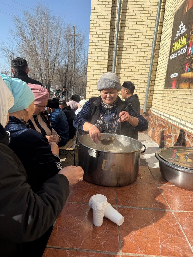 Мешіт ауласында жамағатқа наурыз көже үлестіріліп, дәм берілді.