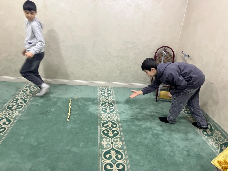 Балаларға айттық тәттілер беріліп, қазақтың ұлттық ойыны асық ату ойынынан жеткіншектер арасында сайыс өтті.