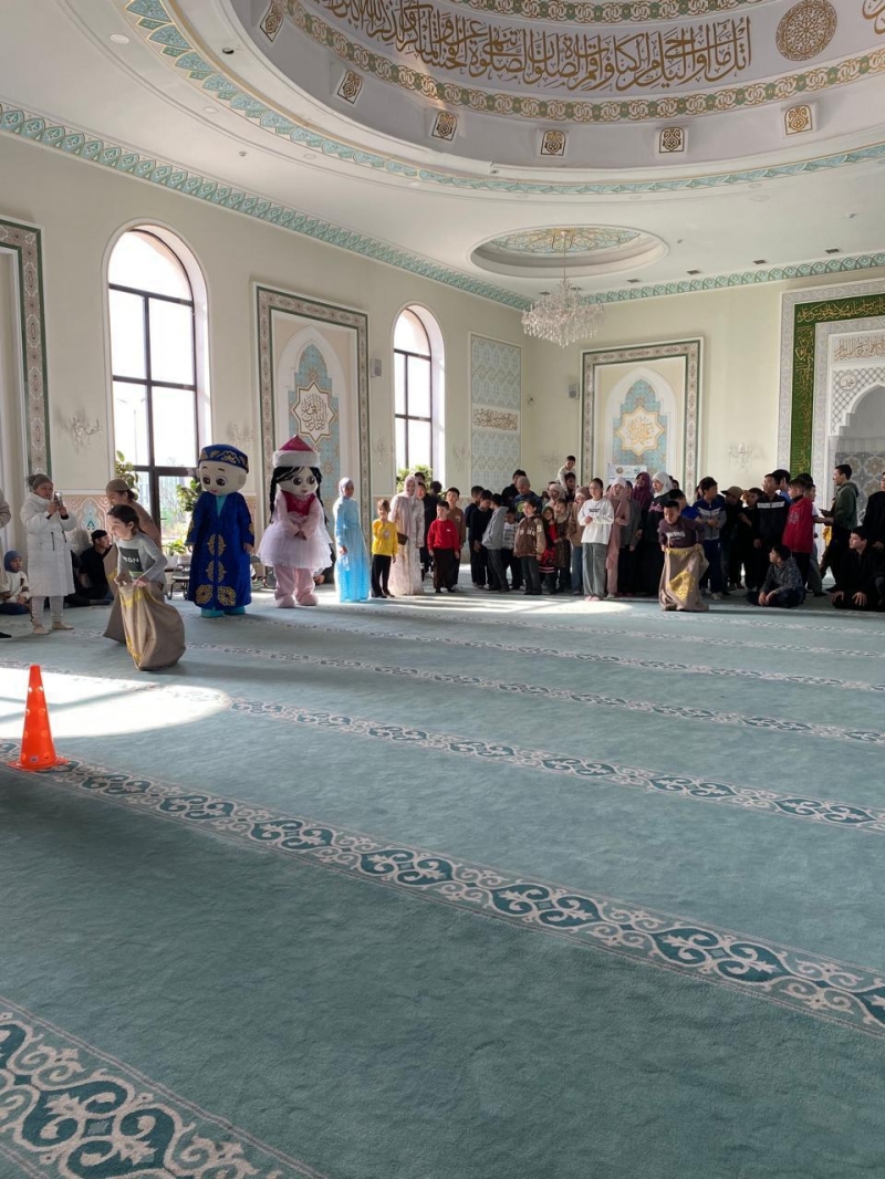 Қарағанды қалалық «Төлеутай ата» мешітінде ұлық мейрам Ораза Айттың құрметіне орай балаларға аниматорлар өнер көрсетіп, көңілді ойындар ойнатылды.