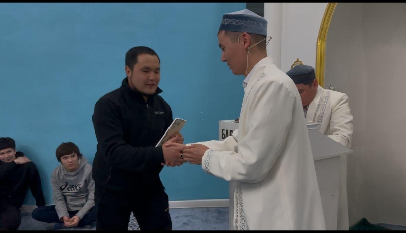 Сұрақтарға нақты әрі мүдірмей жауап берген белсенді жастарға Қарағанды қалалық «Бала қажы» мешіті атынан діни кітаптар сыйға тартылды.