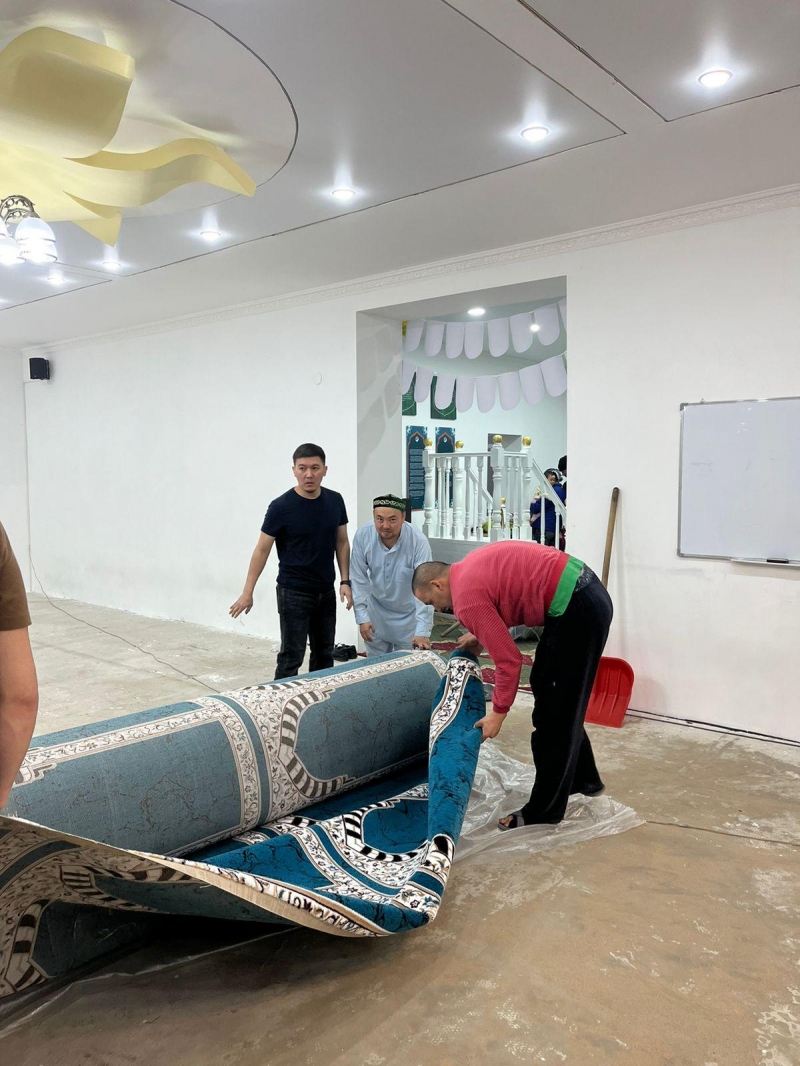 Қарағанды облысы, Бұқар Жырау ауданына қарасты Көкпекті ауылдық мешітіне жаңа жайнамаз төселді.