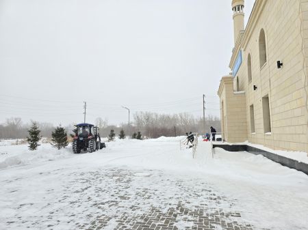 «Төлеутай ата» мешіті ауласын қардан тазартты