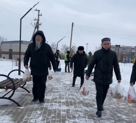 Шахтинск қаласында көше тазалаушыларға ыстық ас үлестірілді