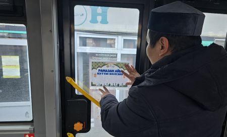 «Төлеутай ата» мешіті: Рамазанға орай құттықтаулар қоғамдық көліктерге ілінді